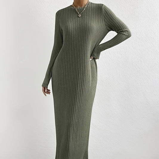 Women's Solid Color Ribbed Round Neck Long Sleeved Straight Tube Dress